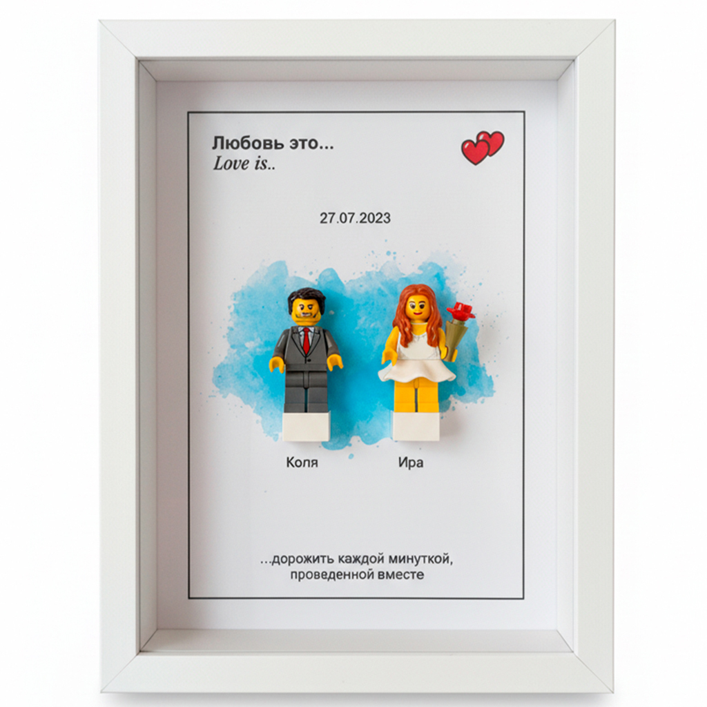 Если вы никогда не рассматривали лего в рамке на заказ самое время увидеть, насколько это мощная идея. Это не просто сувенир. Это маленькая история о вас, оформленная в стильную рамку, где лего человечки становятся персонажами вашей пары.